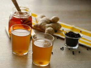 Serving cup mein strain ker ka dal dein,honey dal ker ache tarhan karein & serve karein.