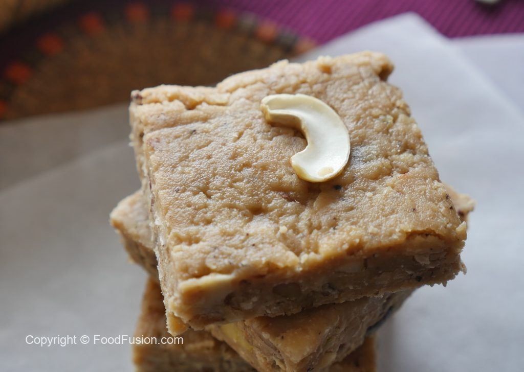 Kaju sa decorate karein aur pieces mein cut ker lein.