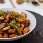 -In a serving plate, add achari arvi, garnish with fresh coriander & serve!