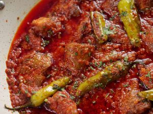 -Fried stuffed chillies ko mutton gravy mein dal dein aur lemon juice dal ker dhak dein aur halki ancch per 3-4 minutes kliya paka lein.