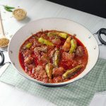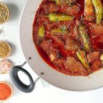 -Add fried stuffed chillies in mutton gravy,lemon juice,cover & cook on low flame for 3-4 minutes.