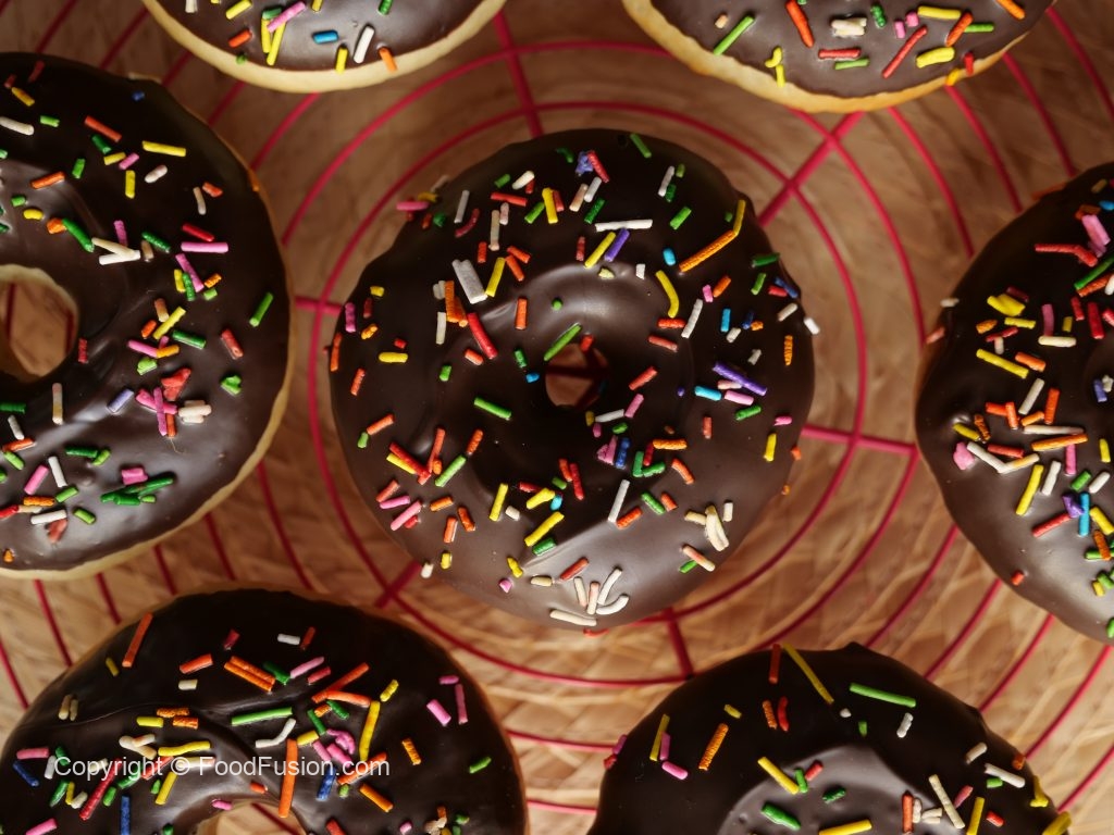 Doughnuts rakh dein,non-stick spray karein aur 150C per 4-5 minutes kliya bake ker lein.
