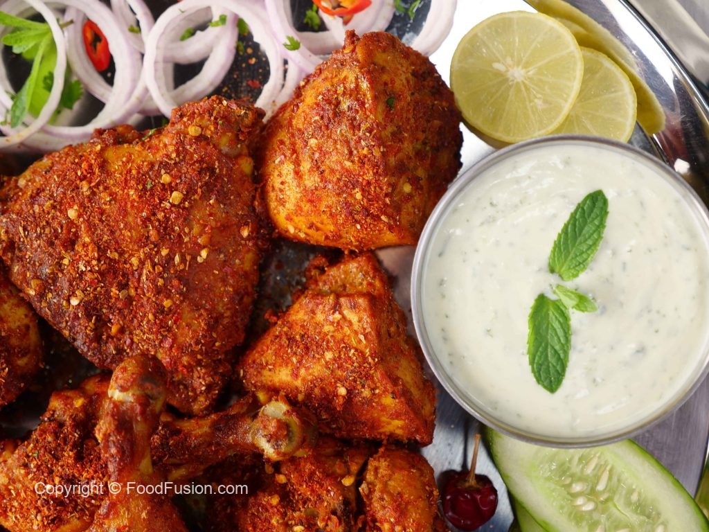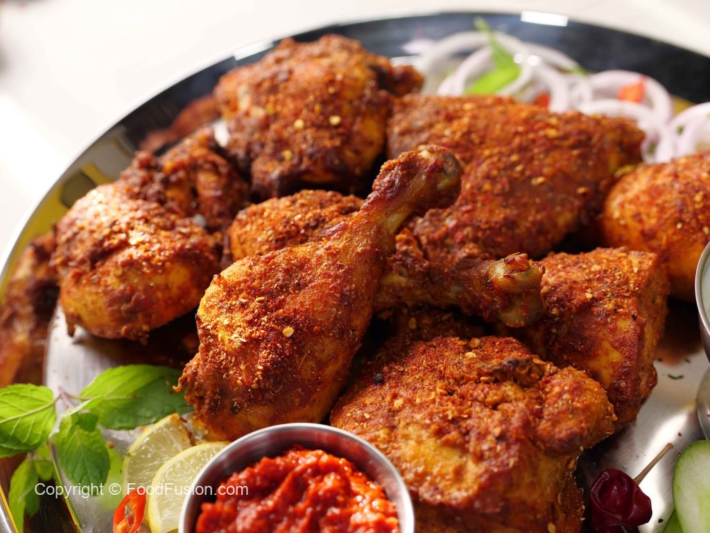 -Bowl mein dahi,adrak lehsan paste,zarda ka rang,cornflour,tayyar spice mix (reserve 1 & ½ tbs for later use),soy sauce,chilli sauce aur lemon juice dal ker ache tarhan mix ker lein.