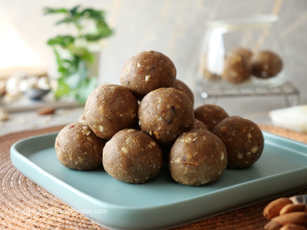 -Both roasted flour & dates mixture should be warm so that they bind together easily.