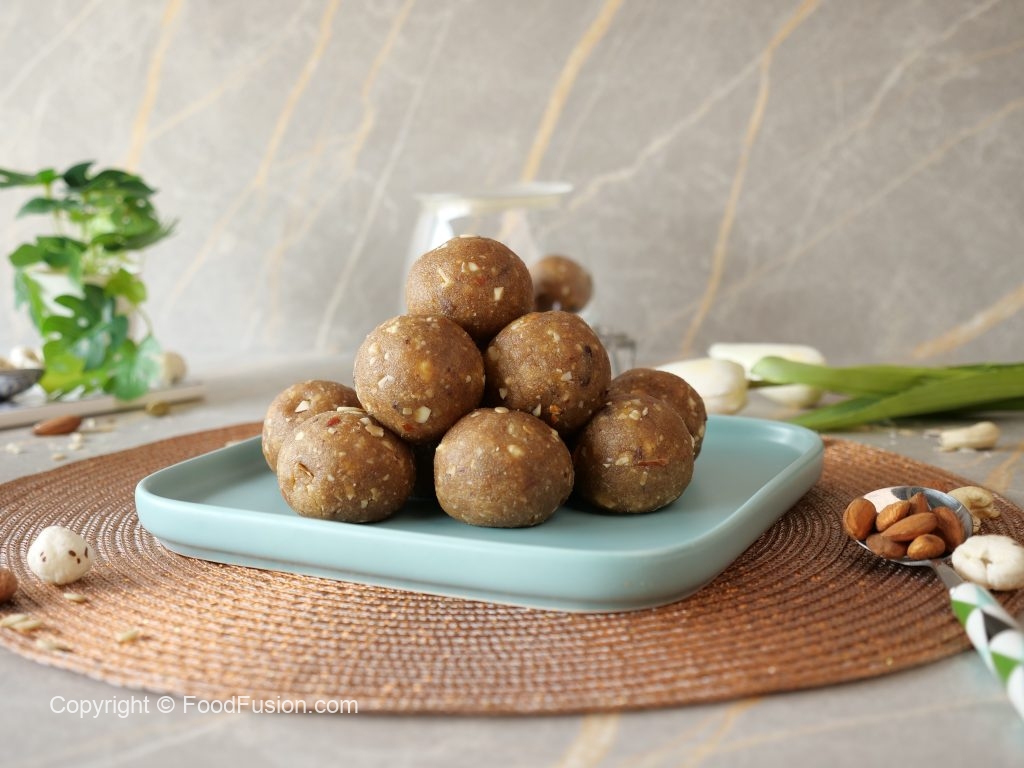 -Haathon ko ghee sa grease karein,mixture ki small quantity lein aur ek jaisay sizes ka laddu tayyar ker lein (makes 16-18).