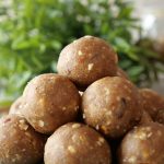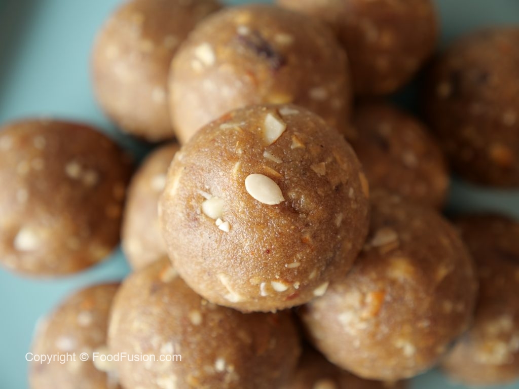 -Grease hands with ghee,take a small quantity of mixture & make laddu of equal sizes (makes 16-18).