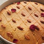 Prepare Basbousa cake with semolina & almonds: