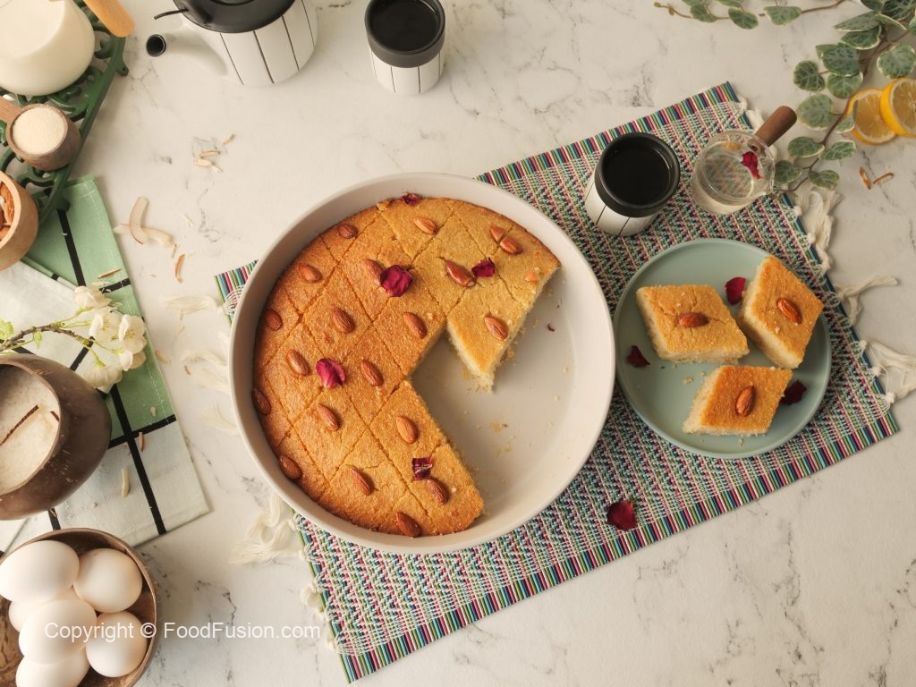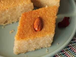 Prepare Basbousa Cake with semolina & almonds: