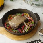 Stir fried vegetables aur beef steak rakh dein aur upper sa peppercorn sauce dal ker serve karein!