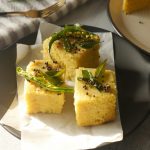 Cut into square pieces and pour tadka evenly on the dhoklas & serve!