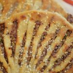 -On heated griddle,place paratha (sesame side down),add clarified butter & cook from both sides on low flame until golden (makes 5).