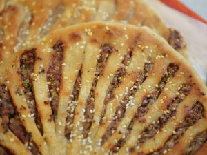 -On upper side of rolled dough,wet with water & sprinkle sesame seeds.