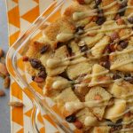Bread cubes,badam,kishmish,chocolate chips,tayyar anday ka mixture,bread cubes,kishmish,badam, chocolate chips aur tayyar anday ka mixture dal dein.