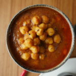 Add left over water from boiled chick peas and mix well,cover and put it on simmer for 6-8 minutes.