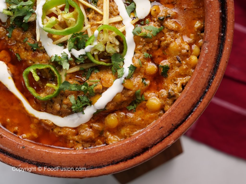 -Add prepared chana daal qeema & garnish with fresh coriander,ginger,green chilli,cream & serve!
