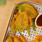 -Dip pet dried spinach leaves in thin pakora batter & fry in pre-heated cooking oil until golden