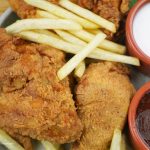 Jab chicken ka marination waqt mukammal hojaye to chicken ko pehle maida ke mixture phir phenta hua anda aur doodh ka mixture main dip karein and akhir main phir maid aka mixture main coat kar lein. Zada der nahi rakhein aur jald oil main daal ke fry karein warna crisp coating nahi hogi. Low-medium aanch pe chicken ko fry karein. Zada nahi rukh badlein warna coating utar jayegi.