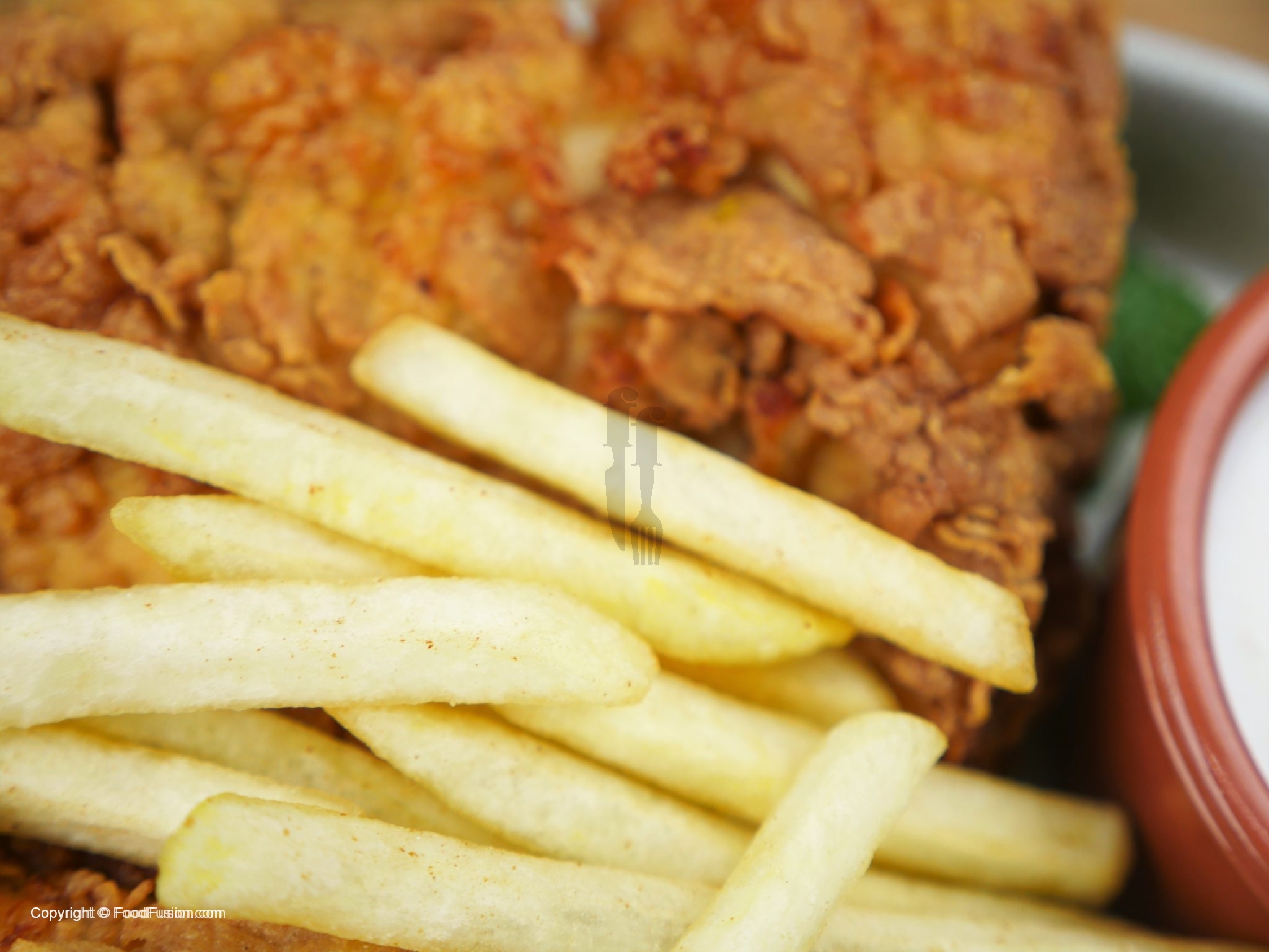 Serve with French Fries, Dinner Rolls and garlic Sauce.
