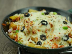 -Chopped chicken,onion powder,zeera powder,lal mirch crushed,kali mirch powder,dried oregano, chicken powder,mustard paste aur lemon juice dal ker ache tarhan mix ker lein.