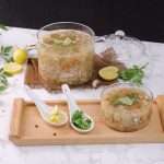 -In a serving bowl,add lemon juice,prepared soup,black pepper crushed,fresh coriander,lemon slice & serve hot!
