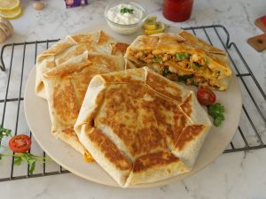 -Serve chicken Fajita crunch wrap with chilli garlic sauce!
