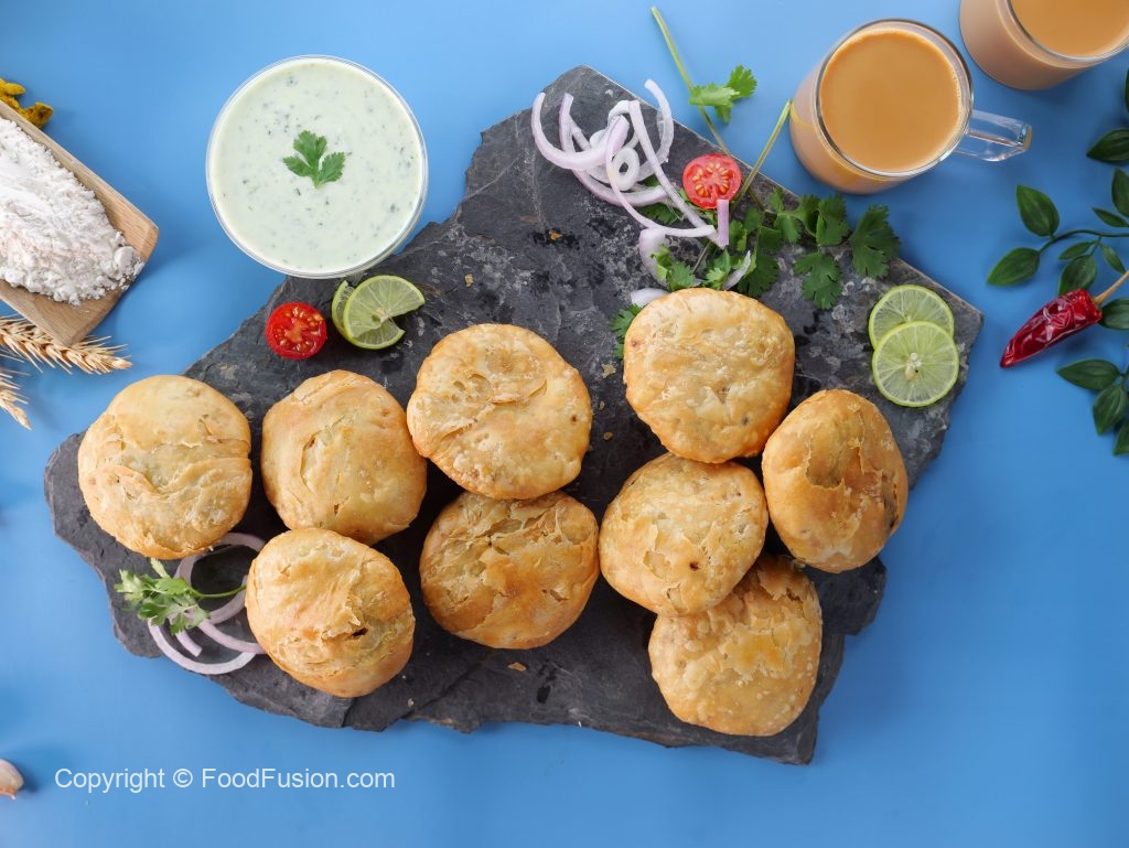 -In a wok,heat cooking oil (100°C) & fry stuffed kachoris on very low flame until golden & crispy (makes 12) & serve!