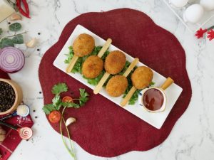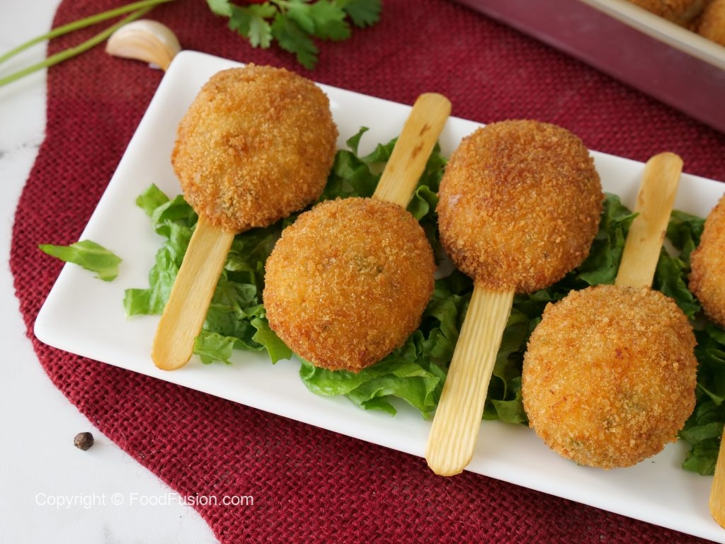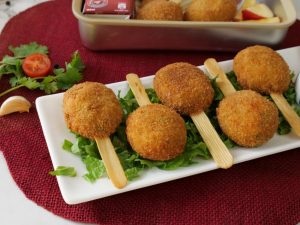 -Coat with all-purpose flour then dip into whisked egg then coat with breadcrumbs (makes 19-20).