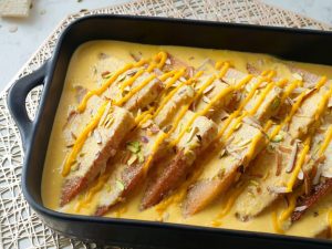 Bowl mein cream,cheddar cheese,lal mirch crushed,lehsan powder aur namak dal ker 30 seconds kliya microwave ker lein phir ache tarhan mix ker lein & side per rakh dein.