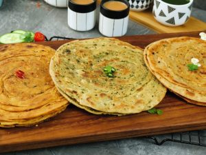 Heat griddle,place paratha,brush oil and cook from both sides until done.