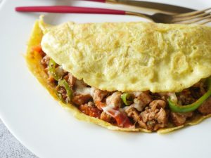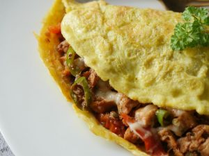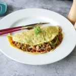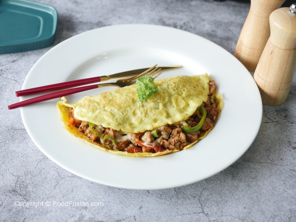 In frying pan,add cooking oil and egg mixture,cook on low flame for 2 minutes then flip and cook other side for a minute.