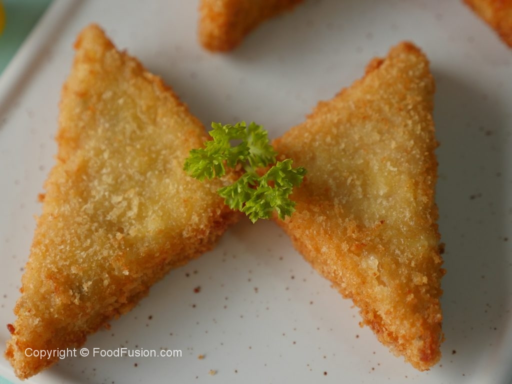 Now coat in all-purpose flour then dip into beaten eggs and coat in breadcrumbs.