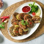 -Ab kababs ko tayyar batter mein dip ker lein.