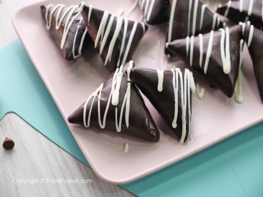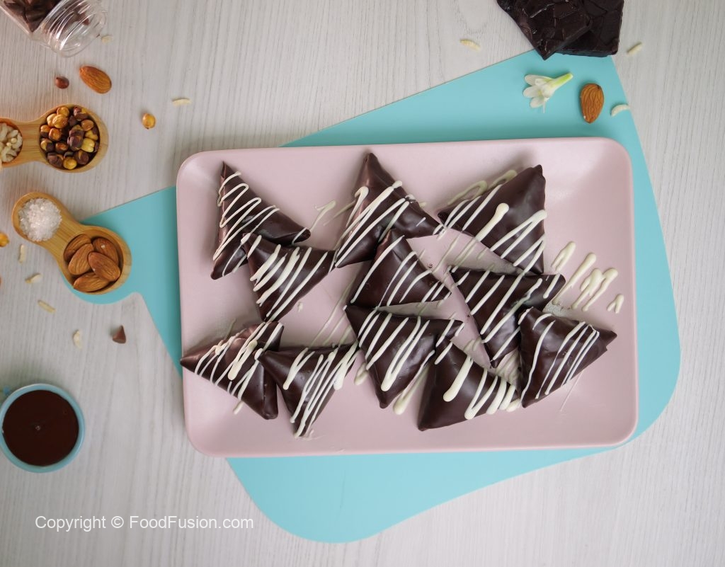 Crispy air-fried samosas filled with a luscious chocolate-nut mixture, then coated in melted chocolate and crunchy nuts for the ultimate treat! #happycookingtoyou #foodfusion #araywahh #monthofgood