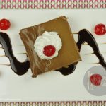 Garnish with chocolate sauce, cherries/strawberries, whipped cream and serve.