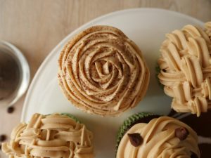 Put the cupcakes on a cooling rack to cool,when cooled,pipe the frosting over the cupcakes and decorate with coffee or chocolate chips.