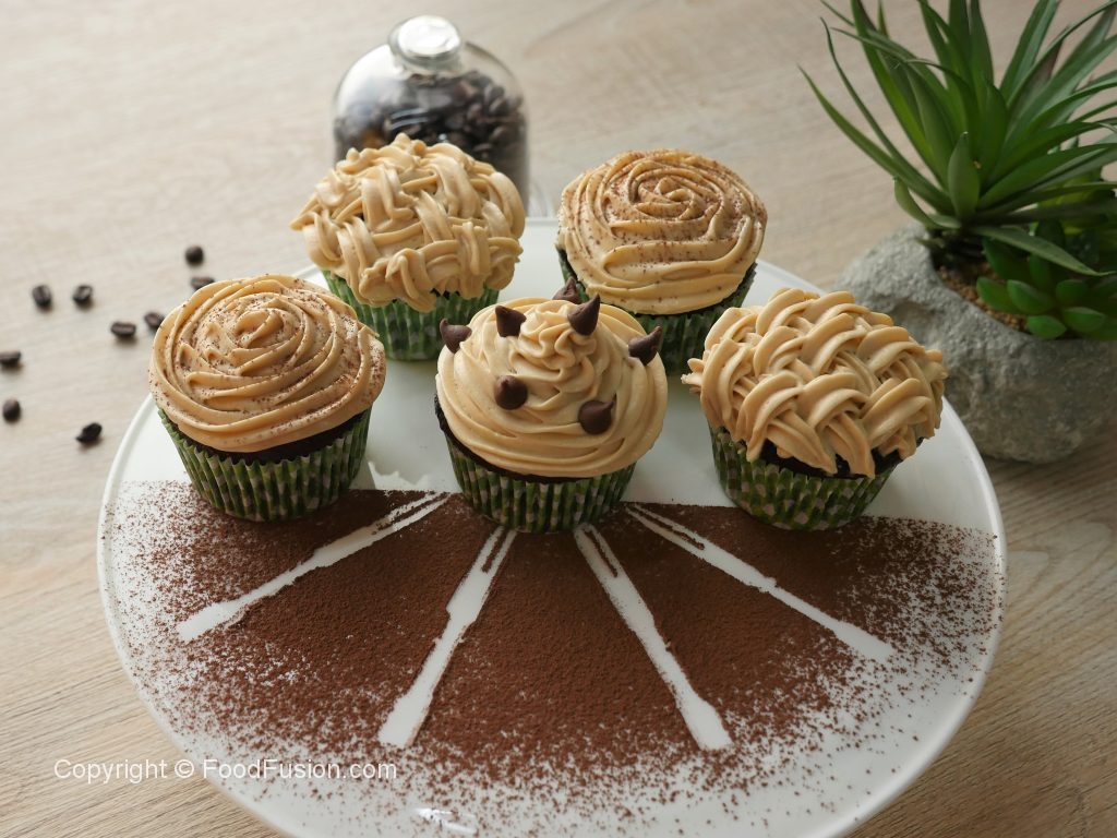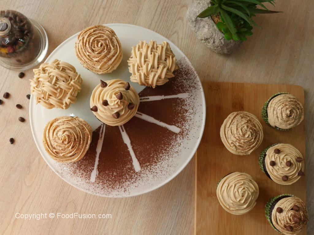 Cupcakes ko cooling rack per rakh ka thanda ker lein,jab thanday ho jayein tou piping bag mein frosting dal ker cupcakes per laga lein aur coffee or chocolate chips sa decorate ker lein.