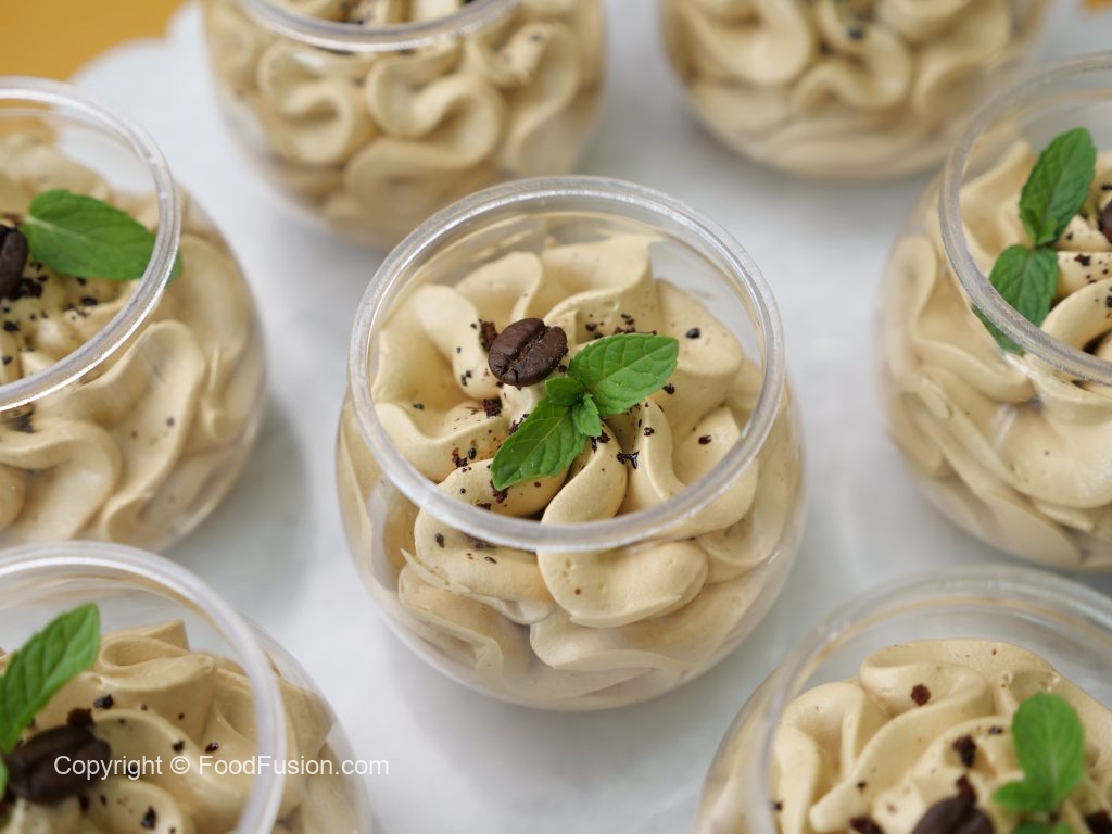 -Instant coffee sprinkle karein,coffee beans aur podina sa garnish ker ka thanda serve karein (makes 10-12 cups).