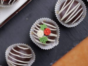 -Drizzle white chocolate & decorate with chocolate flowers & refrigerate until set (makes 12 truffles).