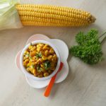 Bowl mein strainer rakh dein aur sweet corns ko strain ker lein & side per rakh dein.