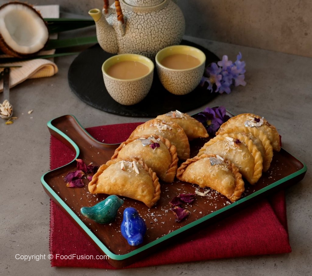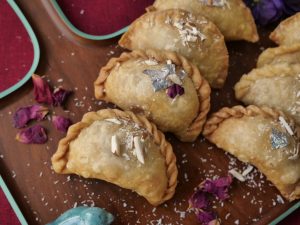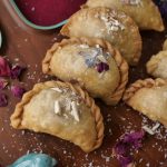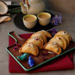 Brush oil on creamy coconut samosa & bake in preheated oven at 200C for 20-25 minutes (flip in between once after 15 minutes).