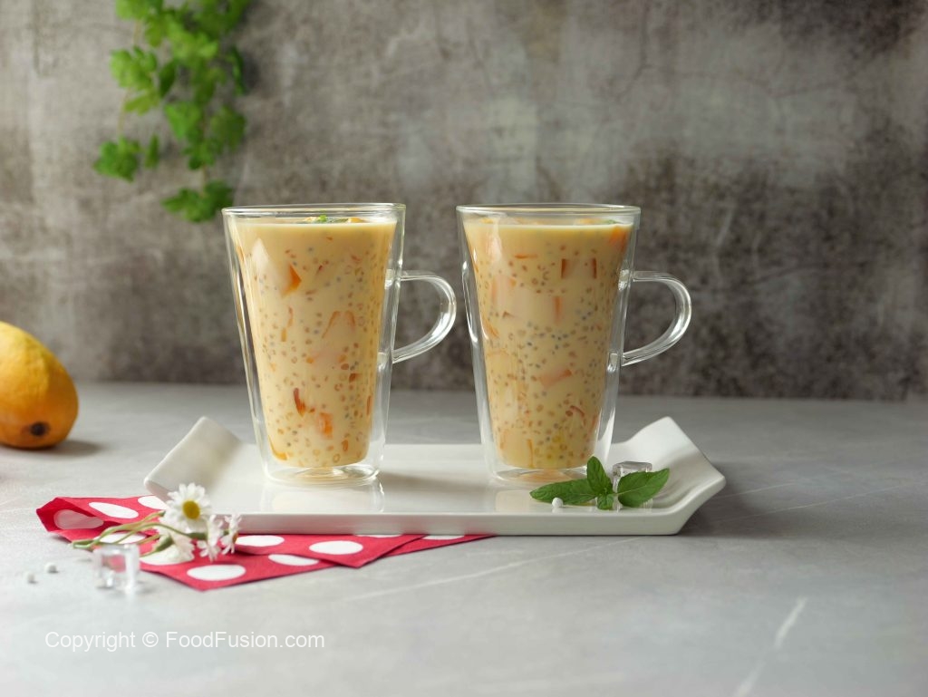 -Ek bowl mein mango puree,boiled sagu dana,mango cubes, soaked tukhme balanga,mango jelly,tayyar creamy milk aur ice cubes dal kar mix ker lein aur serve karein!