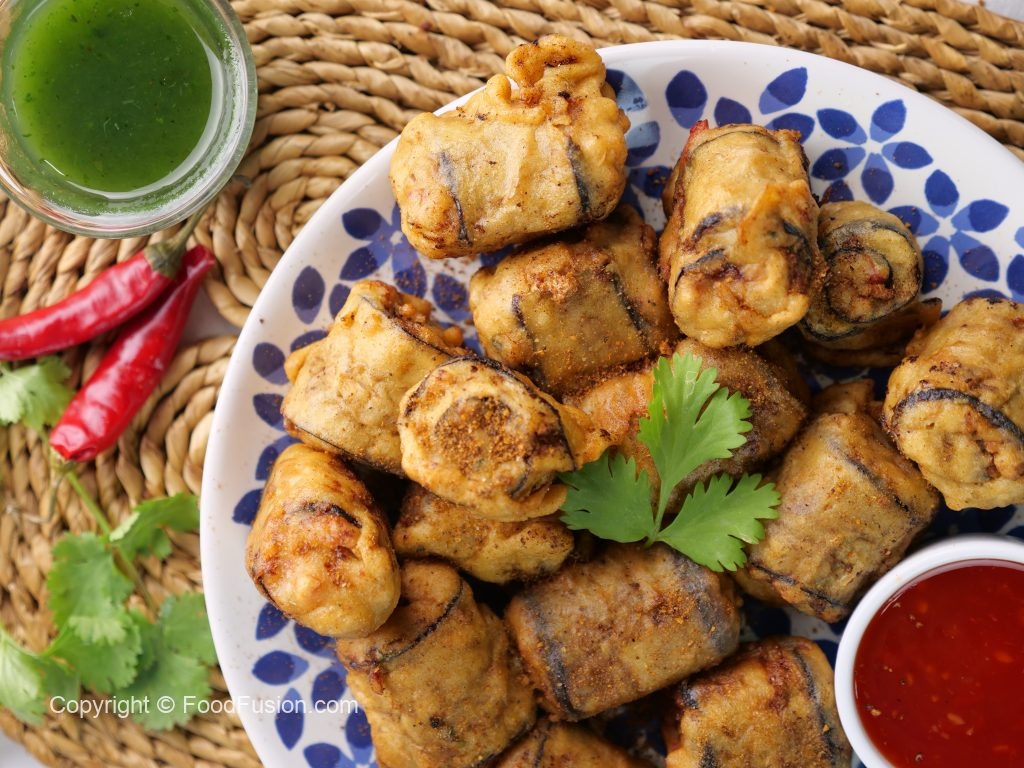 Try our crispy Beguni & Baingan Rollup Pakora Recipe to add something new on the iftar table. #happycookingtoyou #foodfusion #ramazanspecial #Pakora