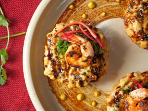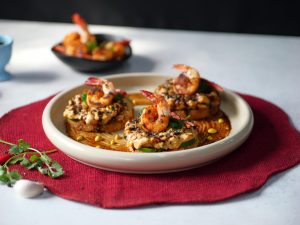 -Add marinated shrimps & fry until golden (2 minutes each side).
