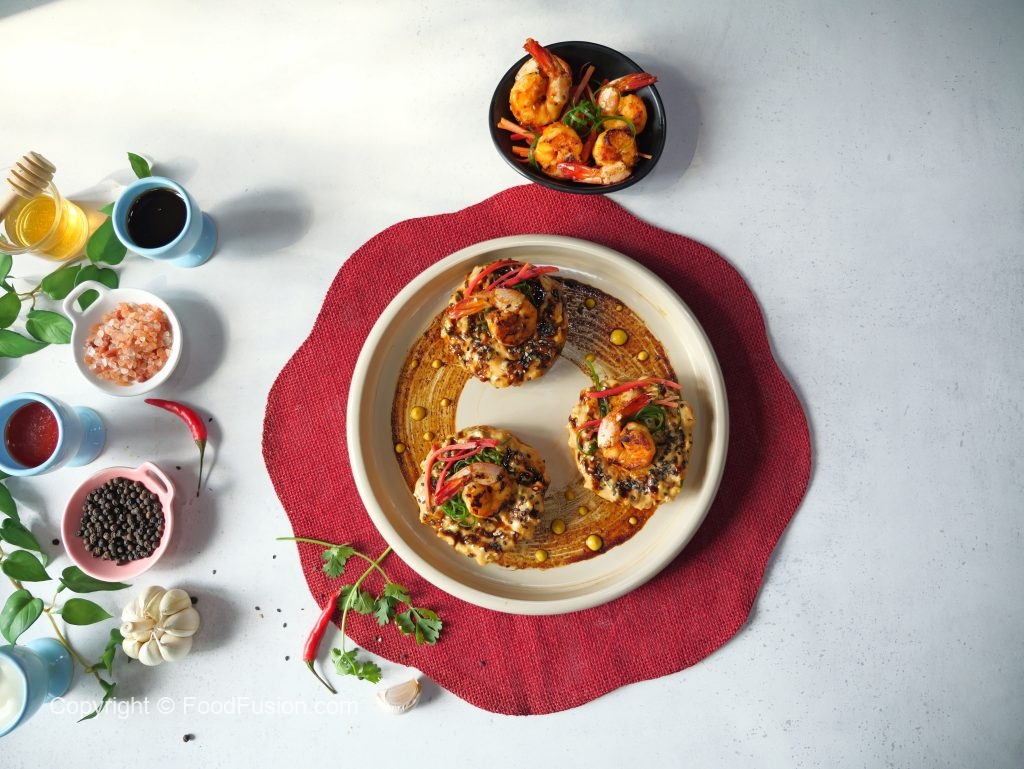 -In a bowl,add shrimps,paprika powder,pink salt,garlic powder,red chilli crushed,honey,olive oil & mix well,cover & marinate for 30 minutes.