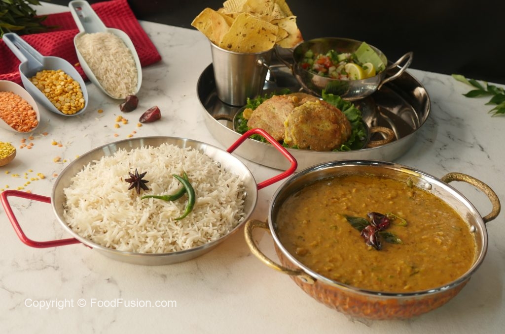 Tayar Daal chawal ko shami kabab, raita, salad or papar k sath serve karen.