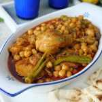 Now add reserved chickpea stock/ water,mix well & bring it to boil,cover & cook on low flame until chicken is tender & oil separates (8-10 minutes).