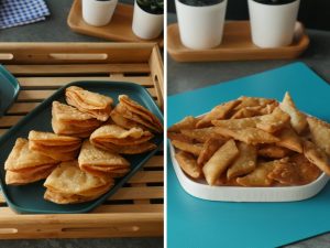 -In a wok,heat cooking oil & fry on medium flame until golden.