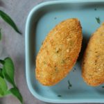 -Now dip in whisked eggs than coat with breadcrumbs (makes 12).