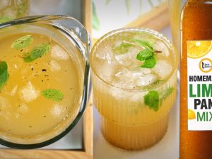 -Serving glass mein lemon slices,pineapple chunks aur podian dal ker muddle ker lein.