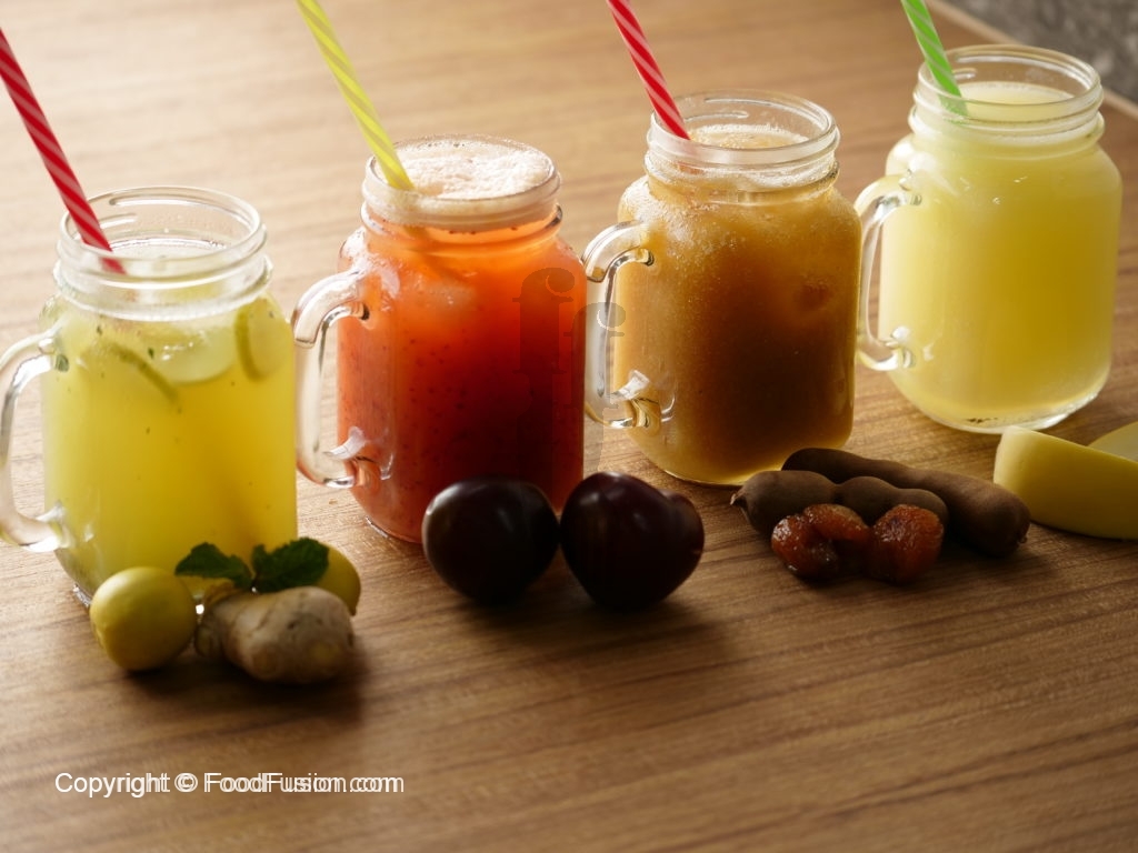 Karbooza (Melon) Juice, Imli& Aloo Bukhara Juice, Shikanjbeen, & Alocha /Aalo Bukhara (Plums) Juice.